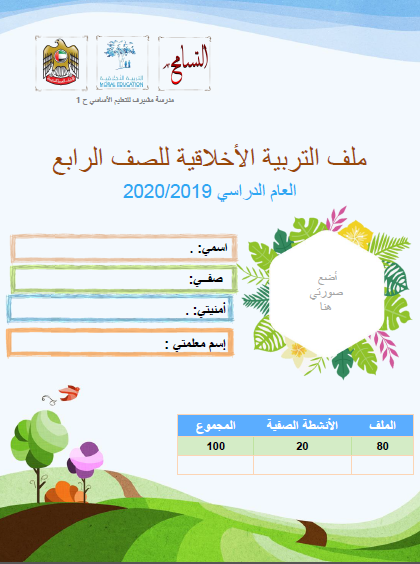 ملف الانجاز لمادة التربية الاخلاقية للصف الرابع الفصل الثاني منتديات صقر الجنوب